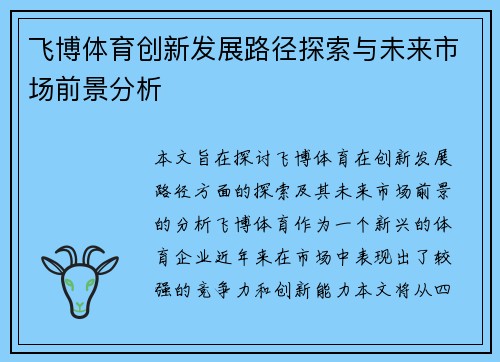 本文旨在探讨飞博体育在创新发展路径方面的探索及其未来市场前景的分析。飞博体育作为一个新兴的体育企业,近年来在市场中表现出了较强的竞争力和创新能力。本文将从四个方面详细分析飞博体育的创新发展路径及其未来市场前景:首先,分析飞博体育在产品创新方面的策略;其次,探讨飞博体育的技术创新和其对市场的推动作用;第三,研究飞博体育的品牌发展与市场推广策略;最后,预测飞博体育在未来市场中的发展趋势与潜在机会。通过这些分析,本文将揭示飞博体育如何在激烈的竞争中脱颖而出,并为其未来的发展提供一定的战略建议。